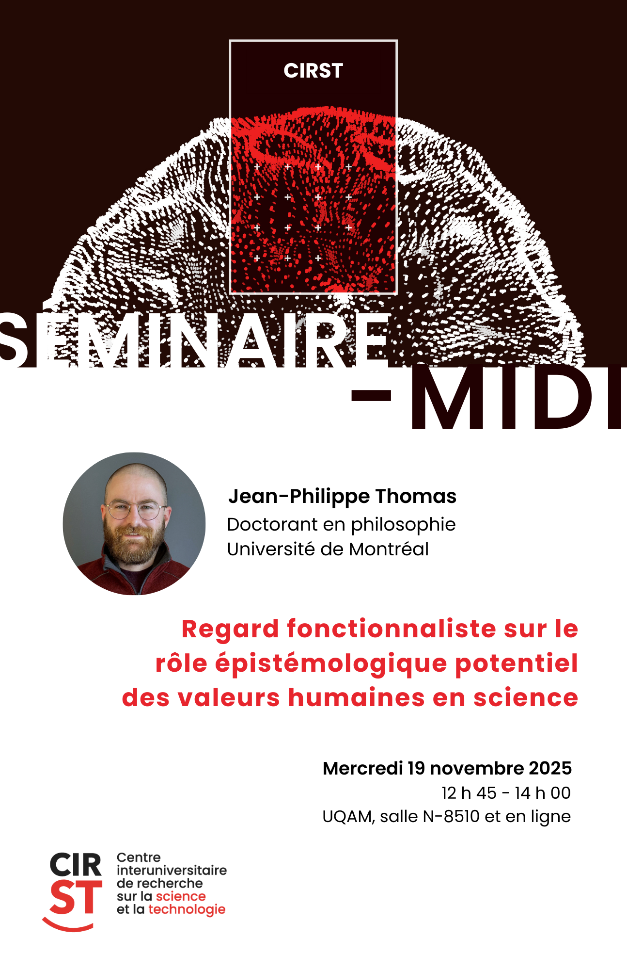Le CIRST est, au Canada, le principal regroupement interdisciplinaire de chercheurs dont les travaux sont consacrés à l’étude des dimensions historiques, sociales, politiques, philosophiques et économiques de l’activité scientifique et technologique. Nos travaux visent l’avancement des connaissances et la mise à contribution de celles-ci dans l’élaboration et la mise en œuvre des politiques ainsi que dans la résolution des problèmes de société qui présentent des dimensions scientifiques et technologiques.