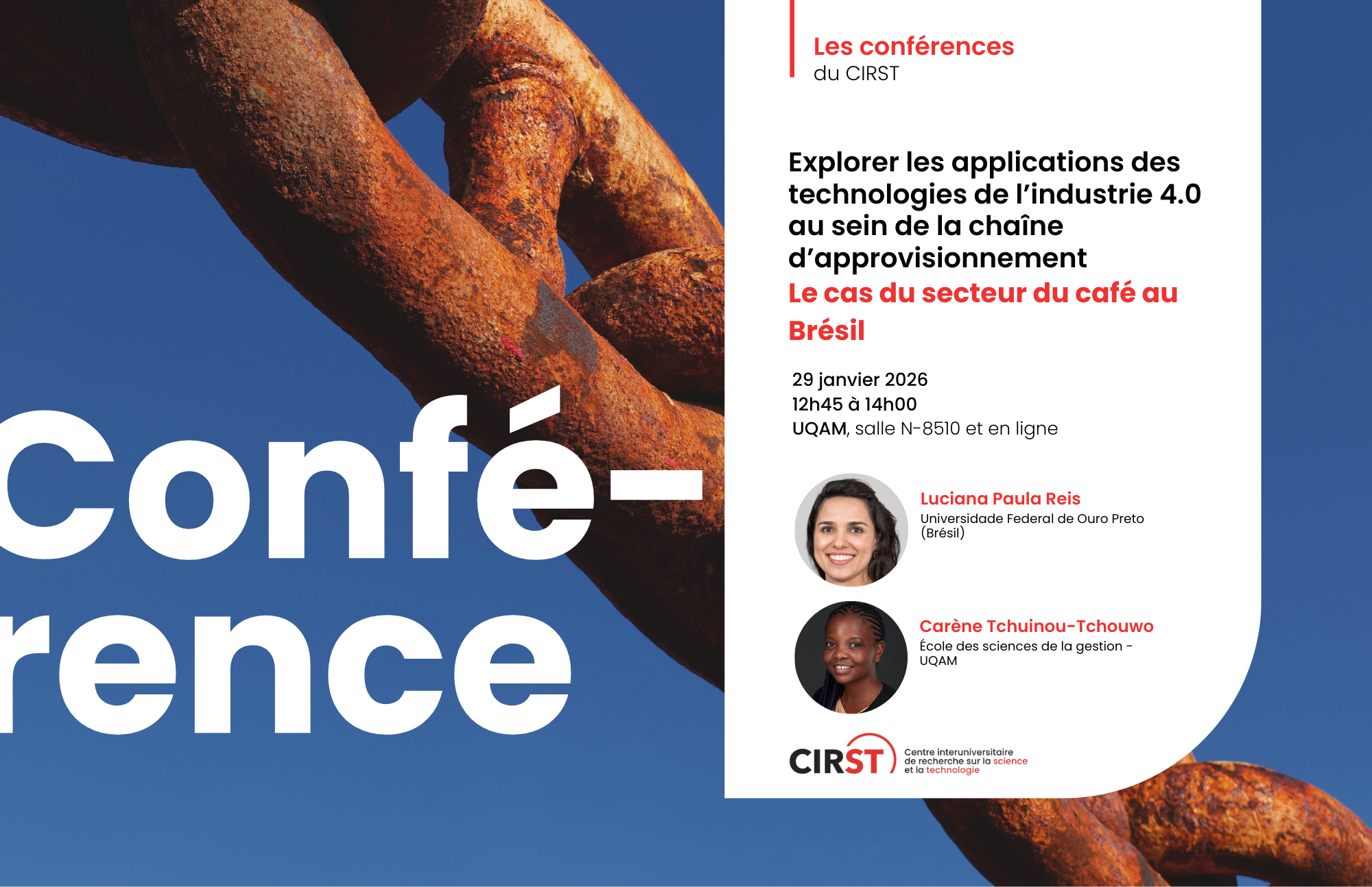 Cette discussion s’inscrit dans la continuité des travaux menés dans le cadre du projet CAROTTE AA, dont l’objectif est d’accélérer la transition vers des chaînes d’approvisionnement agroalimentaires plus durables. Elle propose d’examiner plus spécifiquement les usages des technologies numériques et de l’industrie 4.0 au sein de la chaîne d’approvisionnement du café au Brésil. La discussion mettra en lumière la complexité de cette chaîne d’approvisionnement, les transformations en cours, les technologies actuellement mobilisées ainsi que les dynamiques d’adoption qui les accompagnent. Les échanges permettront d’interroger les conditions organisationnelles, institutionnelles et environnementales qui influencent l’appropriation de ces technologies, de même que les principaux défis liés à leur mise en œuvre. Enfin, cette activité offrira un espace de réflexion critique sur la contribution des technologies de l’industrie 4.0 au renforcement de la durabilité dans les chaînes d’approvisionnement agroalimentaires des pays du Sud, tout en mettant en évidence les limites actuelles, les angles morts et les pistes de recherche qui méritent d’être approfondies.